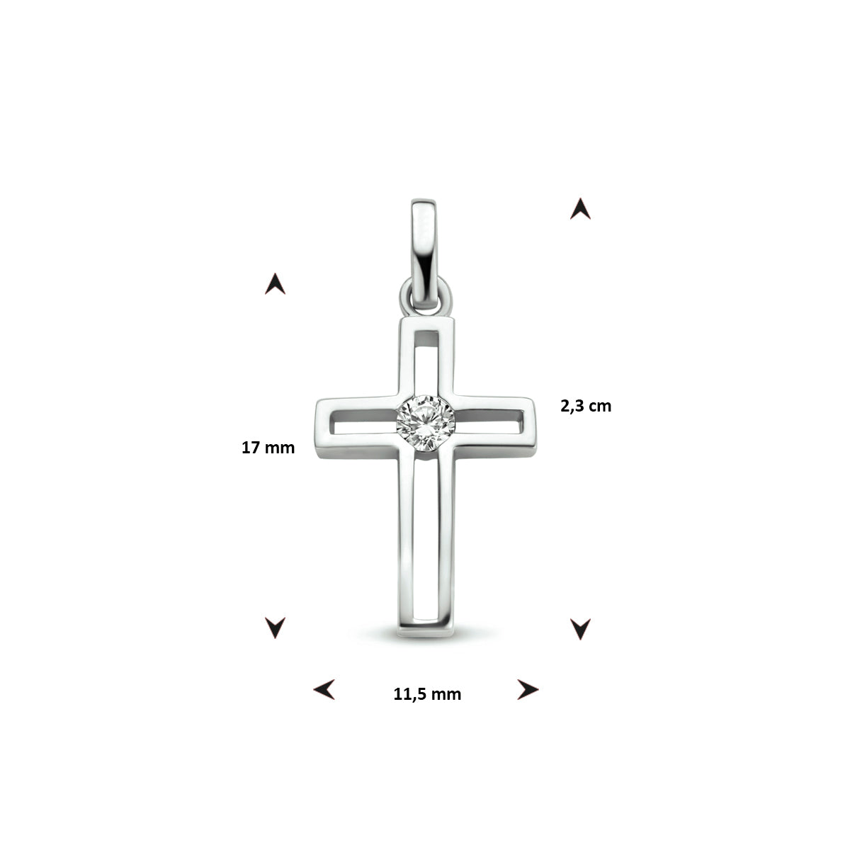 Zilveren hanger kruis zirkonia | 11,5x17mm