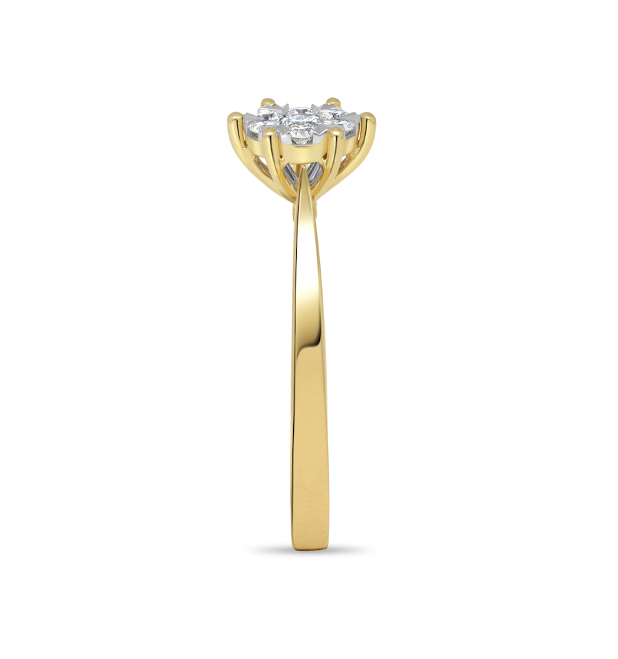 14krt geelgouden ring met 12-0.15ct & 1-0.10ct diamant HSI